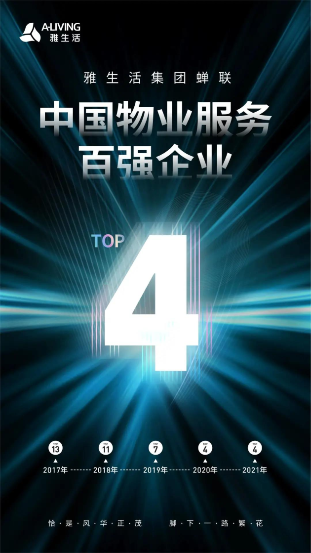 雅生活蝉联中国物业服务百强企业TOP4,持续巩固行业龙头地位
